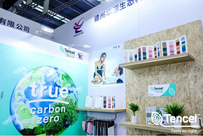 4月19-21日 ,第十八届深圳国际品牌内衣展在深圳(福田)隆重召开,作为中国差别化纱线精品基地,国家功能性色纺纱流行趋势研究中心——德州华源生态科技有限公司(以下简称“德州华源”)携旗下众多满载创意、技术与创新的绿色可持续纱线新品惊艳亮相(展位号:9C03A),向全球展示了国际领先的品质、工艺和服务水平。此次德州华源作为兰精内衣展团的一员,与展团成员一起,集中展现了中国企业的实力与品牌形象,以及携手共赴可持续未来的决心。